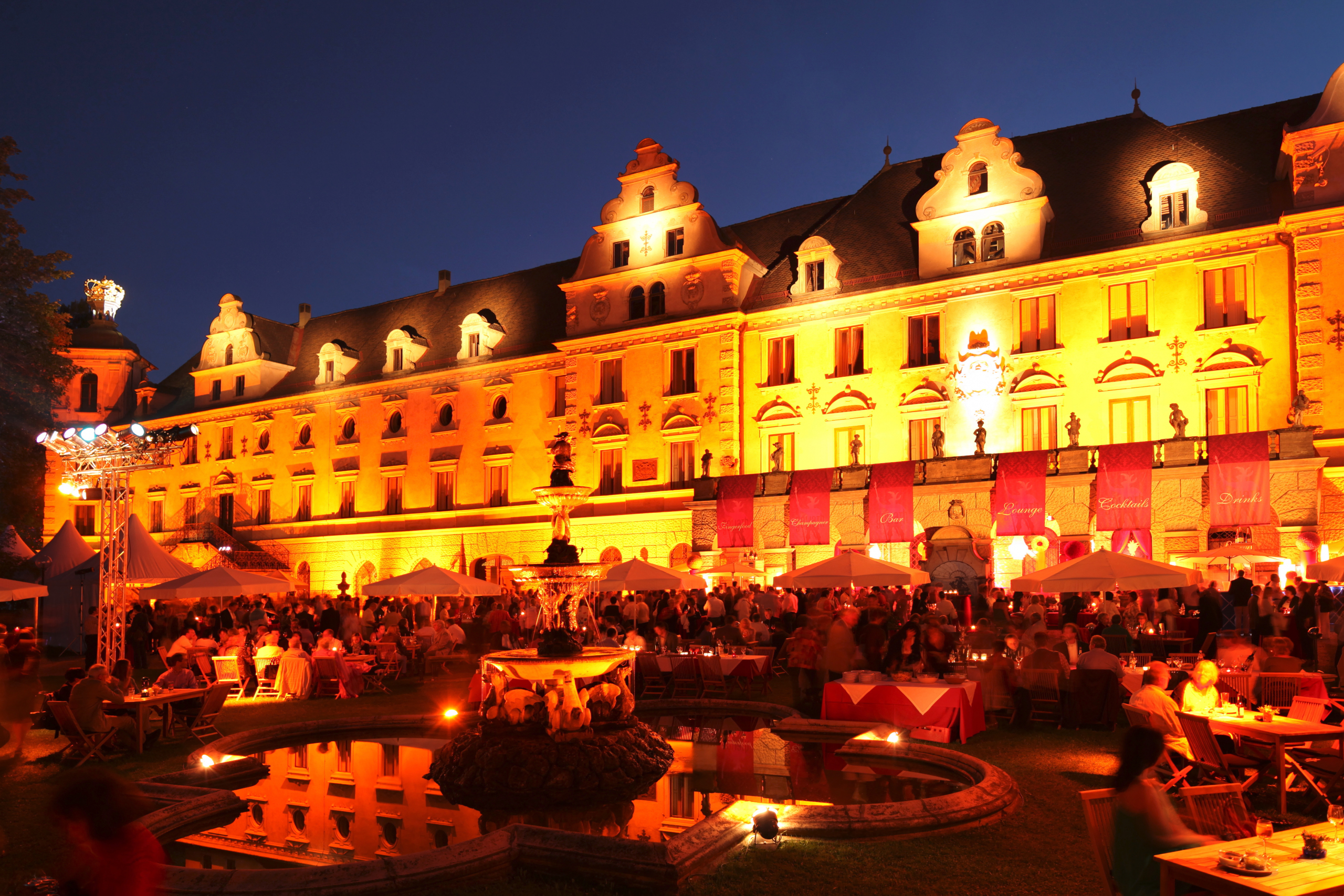 • Elegantes Dinner vor der Opern-Premiere im Schloss-Park von Fürstin Gloria von Thurn und Taxis